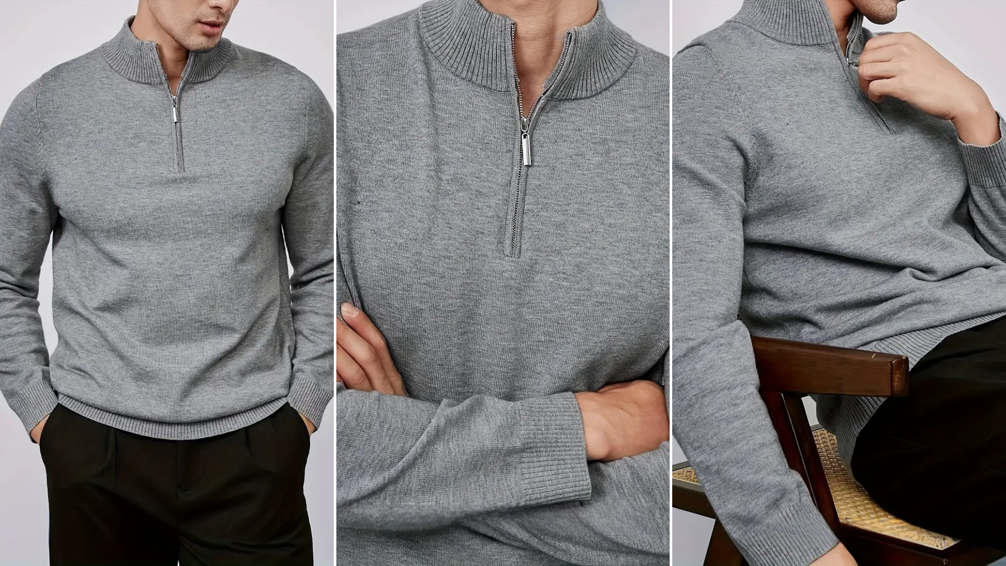 Men's Quilted Wool Cardigan With Hood and Zipper